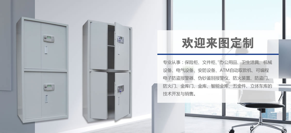 ? 專業從事:保險柜、文件柜、辦公用品、衛生潔具、機械設備、電氣設備、安防設備、ATM自動取款機、可編程電子防盜報警器、偽鈔鑒別報警儀、防火裝置、防盜門、防火門、金庫門、金庫、智能金庫、五金件、立體車庫的技術開發與銷售